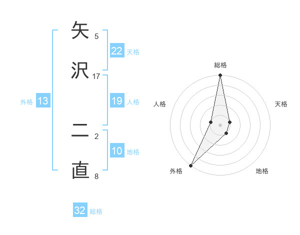 矢沢 二直さんの外格は13画の5点!