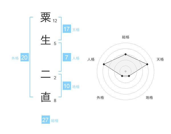 粟生 二直さんの天格は17画の4点!