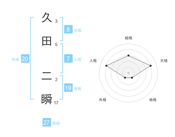 久田 二瞬さんを姓名の画数から五運を鑑定
