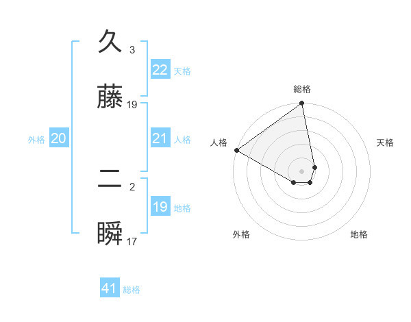 久藤 二瞬さんの総格は41画の5点!