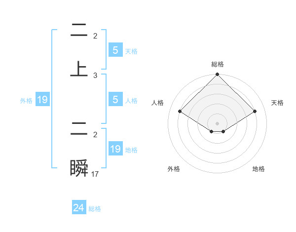二上 二瞬さんの天格は5画の4点!