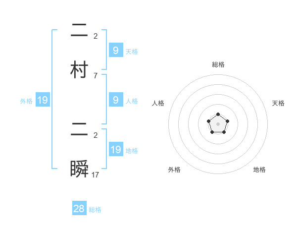 二村 二瞬さんを姓名の画数から五運を鑑定