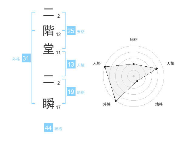 二階堂 二瞬さんの外格は31画の5点!