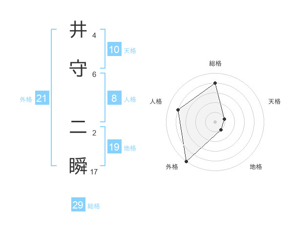 井守 二瞬さんを姓名の画数から五運を鑑定