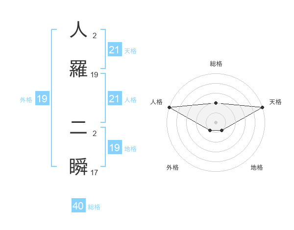 人羅 二瞬さんを姓名の画数から五運を鑑定