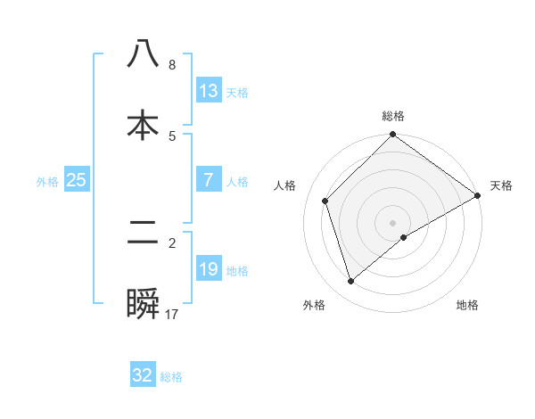 八本 二瞬さんの天格は13画の5点!