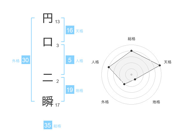 円口 二瞬さんの総格は35画の4点!