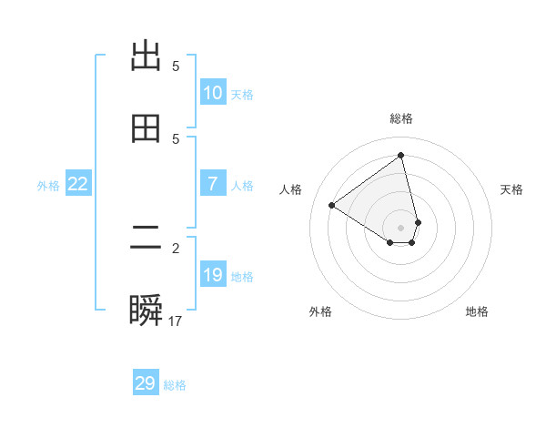 出田 二瞬さんを姓名の画数から五運を鑑定