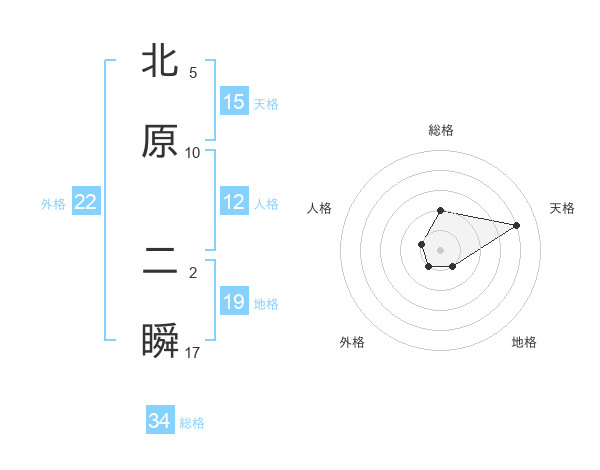 北原 二瞬さんを姓名の画数から五運を鑑定