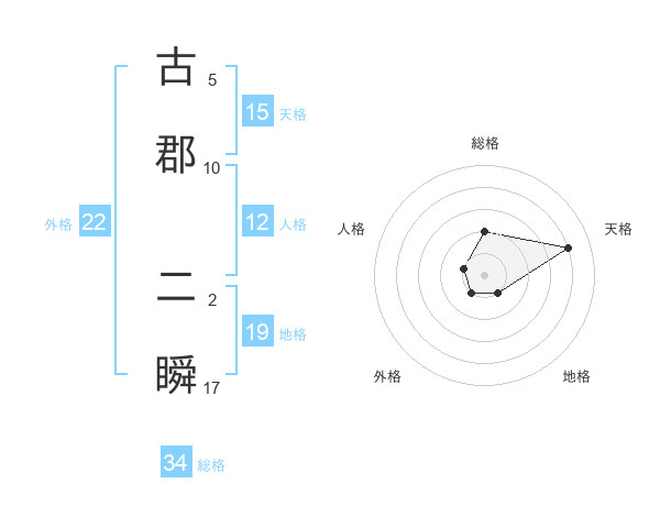 古郡 二瞬さんを姓名の画数から五運を鑑定