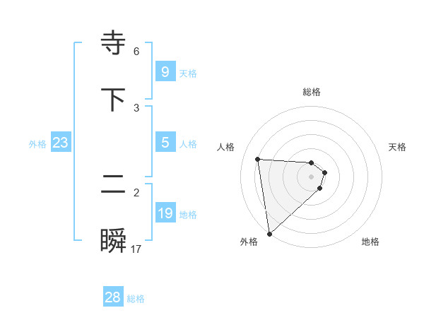 寺下 二瞬さんを姓名の画数から五運を鑑定