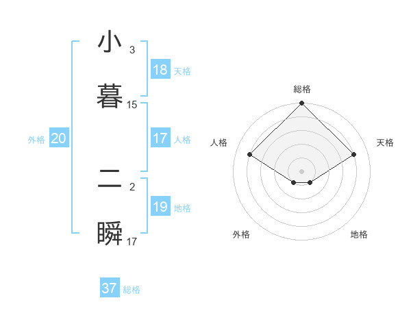小暮 二瞬さんを姓名の画数から五運を鑑定