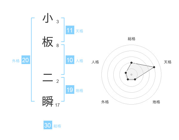 小板 二瞬さんを姓名の画数から五運を鑑定