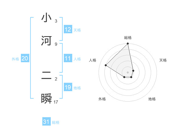 小河 二瞬さんの総格は31画の5点!