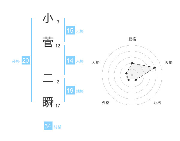 小菅 二瞬さんの総格は34画の2点!