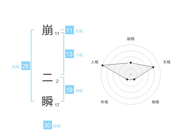 崩 二瞬さんの総格は30画の2点!