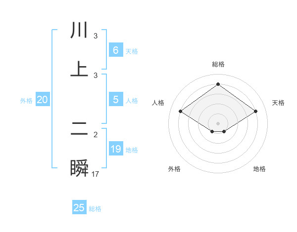 川上 二瞬さんの総格は25画の4点!