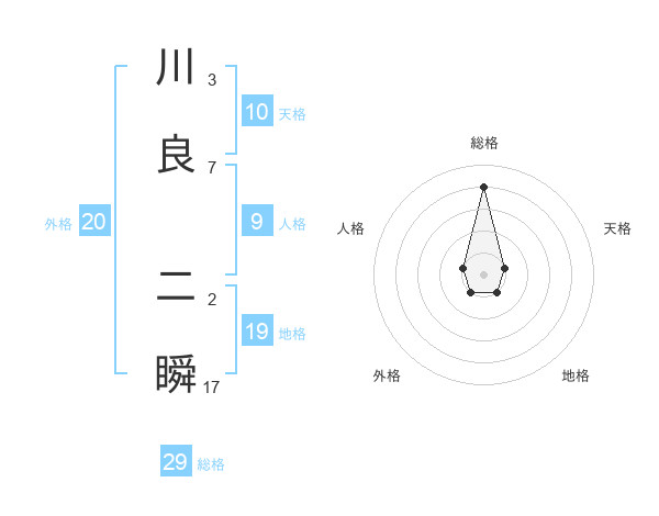 川良 二瞬さんの総格は29画の4点!
