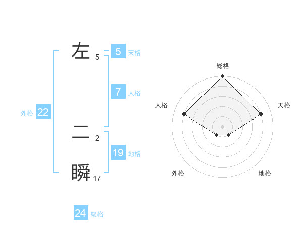 左 二瞬さんの外格は22画の1点!