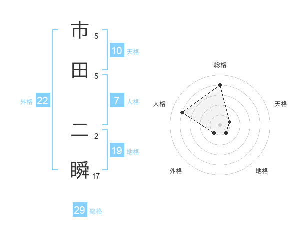 市田 二瞬さんを姓名の画数から五運を鑑定
