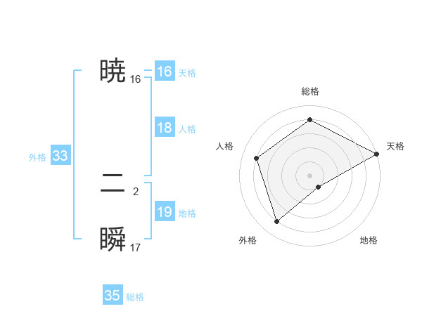 暁 二瞬さんを姓名の画数から五運を鑑定