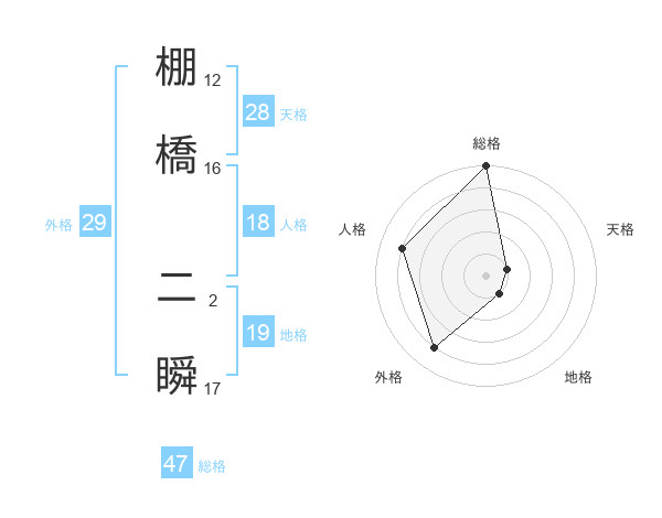 棚橋 二瞬さんを姓名の画数から五運を鑑定