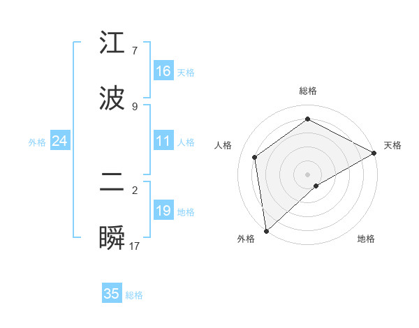 江波 二瞬さんを姓名の画数から五運を鑑定