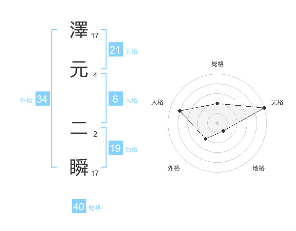 澤元 二瞬さんの総格は40画の2点!