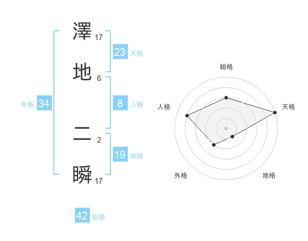 澤地 二瞬さんを姓名の画数から五運を鑑定