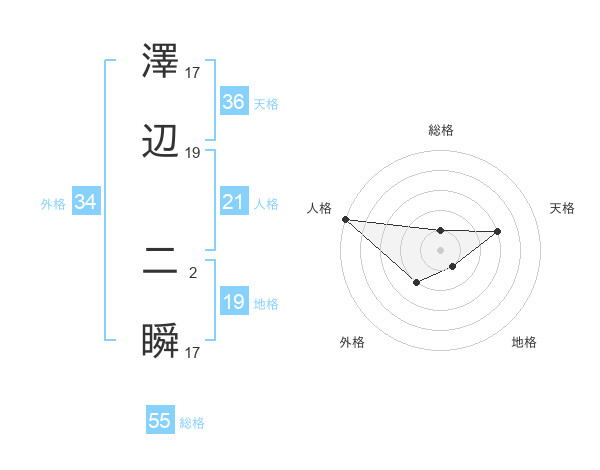 澤辺 二瞬さんの総格は55画の1点!