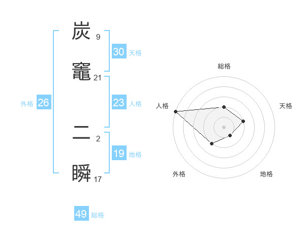 炭竈 二瞬さんを姓名の画数から五運を鑑定