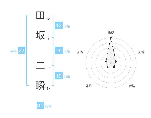 田坂 二瞬さんを姓名の画数から五運を鑑定