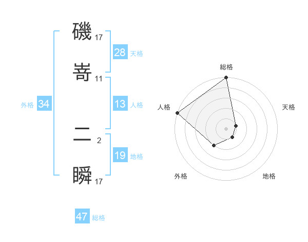 磯嵜 二瞬さんの総格は47画の5点!