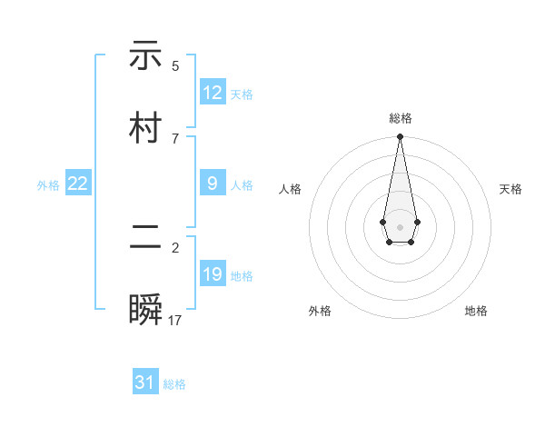 示村 二瞬さんの総格は31画の5点!