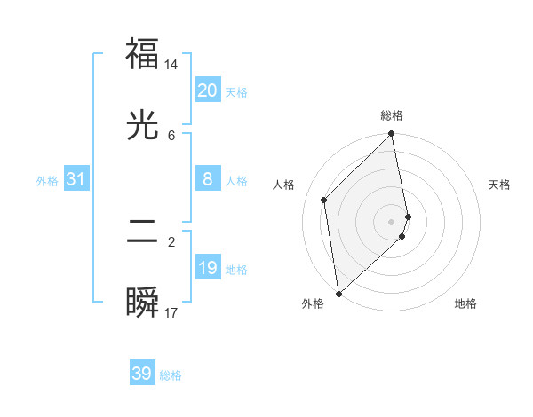 福光 二瞬さんの総格は39画の5点!