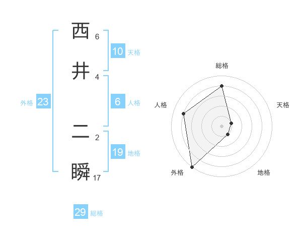 西井 二瞬さんの総格は29画の4点!