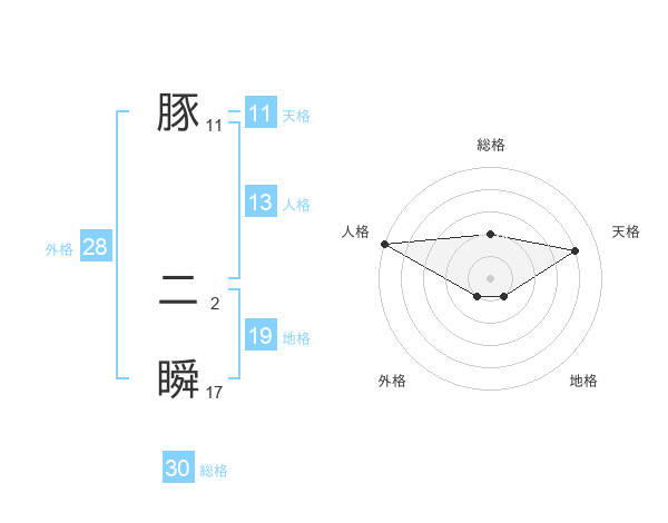 豚 二瞬さんの総格は30画の2点!