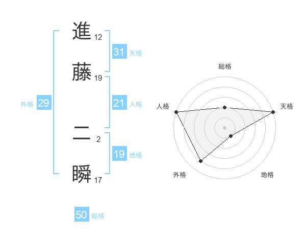 進藤 二瞬さんの総格は50画の2点!