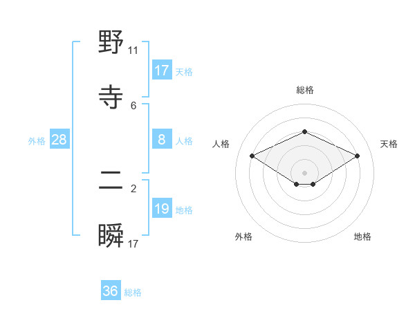 野寺 二瞬さんを姓名の画数から五運を鑑定