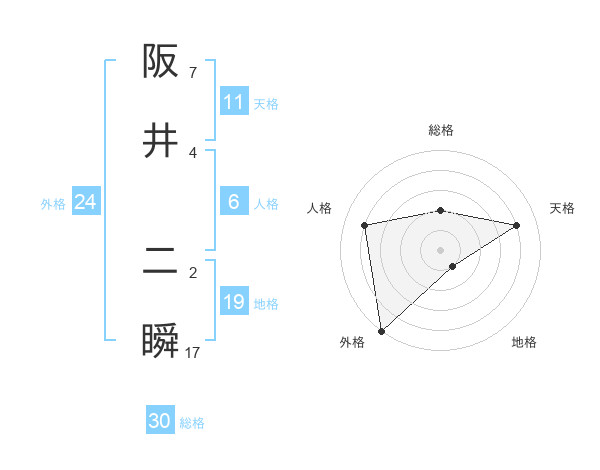 阪井 二瞬さんの総格は30画の2点!