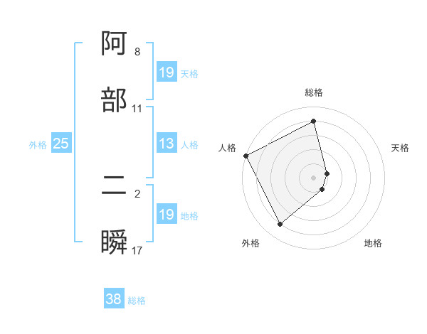 阿部 二瞬さんの総格は38画の4点!