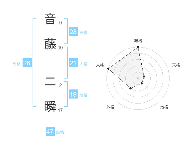 音藤 二瞬さんの総格は47画の5点!