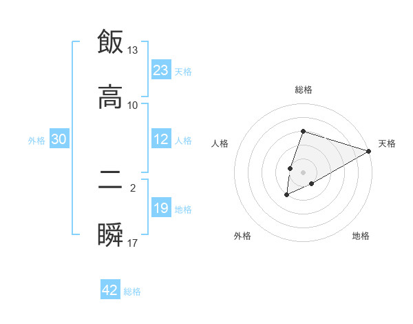 飯高 二瞬さんの総格は42画の3点!