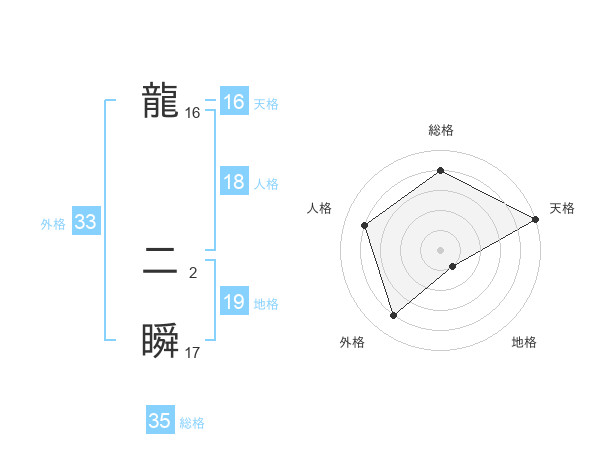 龍 二瞬さんを姓名の画数から五運を鑑定