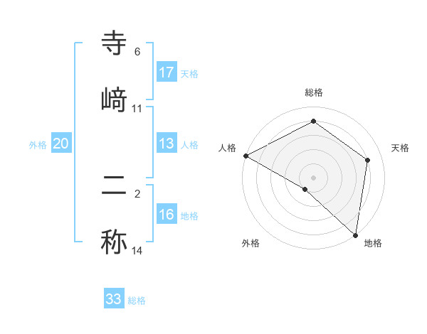 寺﨑 二称さんの天格は17画の4点!