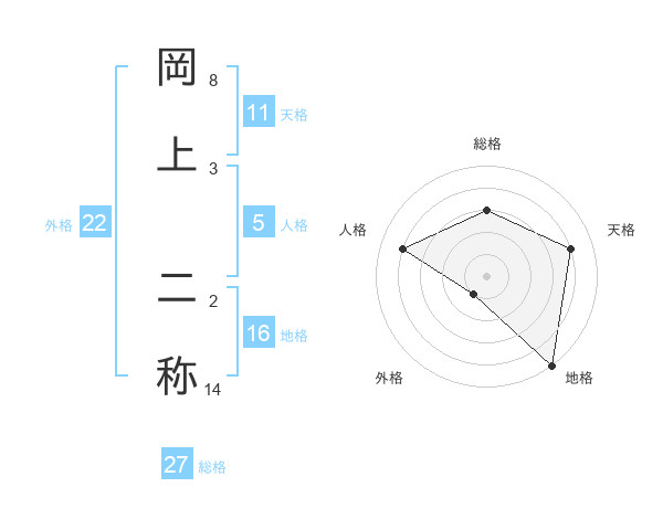 岡上 二称さんの外格は22画の1点!