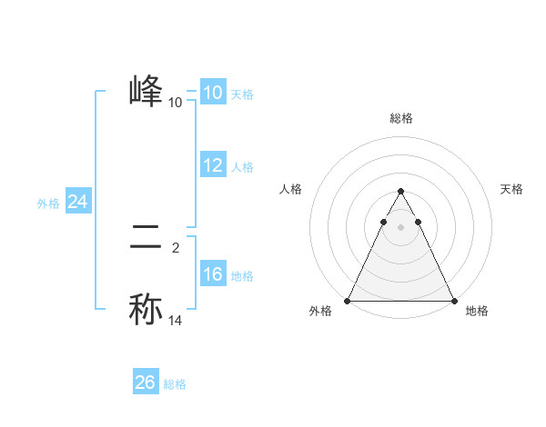 峰 二称さんの総格は26画の2点!