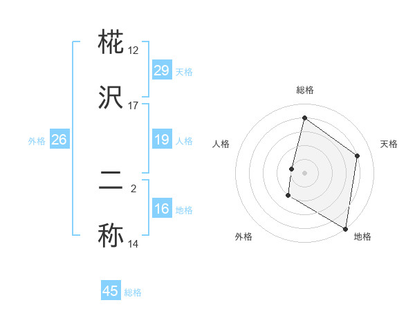 椛沢 二称さんの総格は45画の4点!