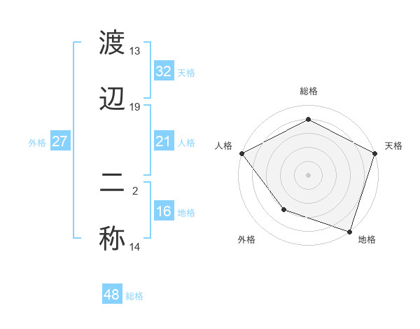 渡辺 二称さんの天格は32画の5点!