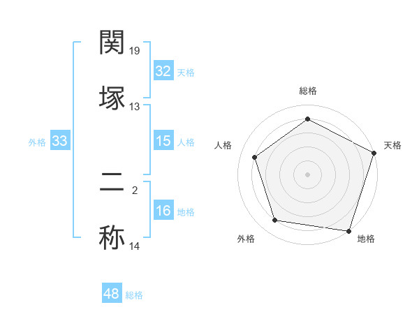 関塚 二称さんの天格は32画の5点!